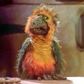 Simone Poupon appeared in the Dinosaurs episode "Getting to Know You." The mother of Francois Poupon and wife of Henri Poupon, Simone and her kin are birds from an unnamed country outside of Pangaea, modeled on France. Madame Poupon is taken aback to find Baby Sinclair staring intently at her, but Fran reminds him that he's already eaten one of the family, and two would spoil his dinner.