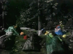 - In the original script for the video, Cookie Monster's appearance was replaced by a scene where Grover and the campers observe various insects crawling along the ground, particularly an ant carrying a crumb. They see the ant again carrying a soda can, which they are taking to dispose of properly. Grover additionally have five campers, specifically named Michelle, Junior, Flora, Fauna, and Akim.[1]