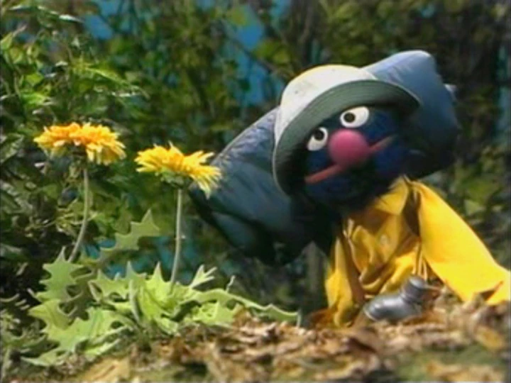 FRAME 4 | Grover now explains to his campers that they should respect and take care of the plants, such as the "leafareno" (a tree) and some roaring dandelions and wildflowers. |