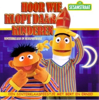 Sinterklaas has figured prominently in many Sesamstraat productions, often accompanied by his friend and helper Zwarte Piet (Black Pete, who in current Sinterklaas lore is one of many, akin to Santa's elves). On the album Hoor Wie Klopt Daar Kinderen, Bert and Ernie, along with a nervous Grover, anxiously await his arrival. He was also heard with the native Sesamstraat characters in the album Sint Is Zoek! (played by composer Ad Wammes).