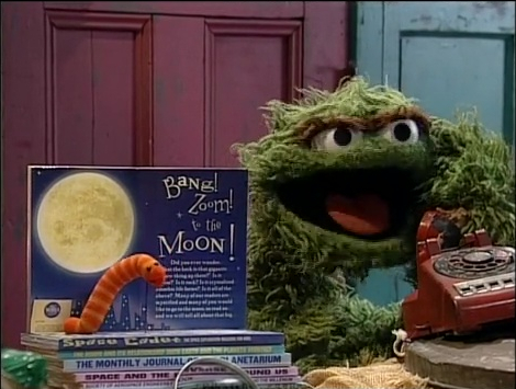 Slimey to the Moon describes a Sesame Street story arc that took place in 1998 in which Oscar the Grouch's pet worm Slimey ventured to the Moon.