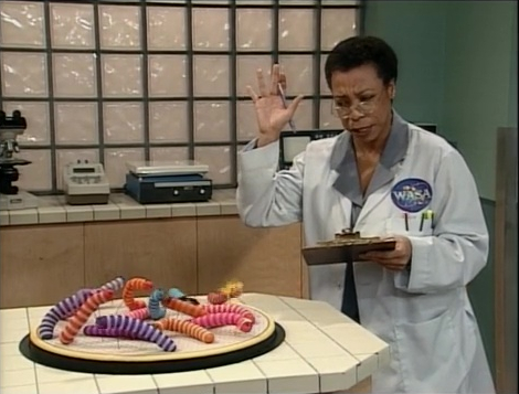 Episode 3740 Roving reporter Kermit the Frog covers the first landing of worms on the moon from WASA mission control at Sesame Street. Everyone around the world watches as Slimey steps out of the ship first; he and his fellow crew collect samples from the Moon and conduct various experiments before beginning their journey home. |