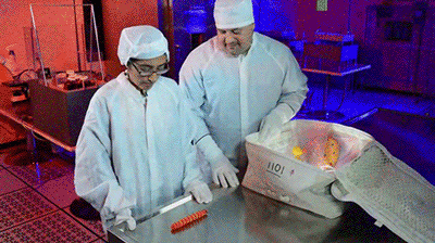 Slimey being prepared to go into actual space.