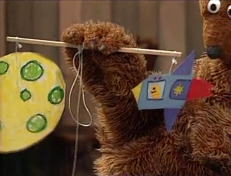 Episode 3711 Inspired by Slimey's voyage, Baby Bear creates a space-themed mobile. |