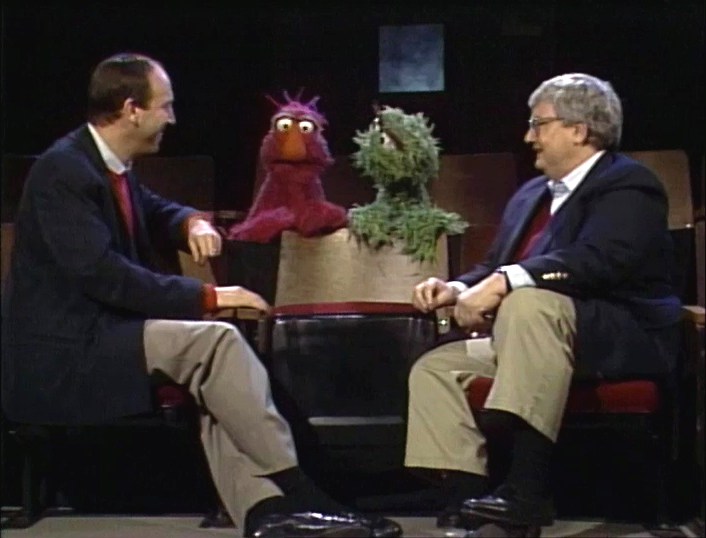 Telly and Oscar welcome special guests Gene Siskel and Roger Ebert, who demonstrate their famous way of rating movies: "thumbs up" and "thumbs down." They show how to do their critic exercises to help keep their thumbs in fine form. Oscar then goads Siskel and Ebert into an argument, particularly over Ebert saying you could have a "thumbs sideways" movie, for those which have flaws but aren't completely terrible.