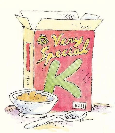 - In his book One Frog Can Make a Difference, Kermit talks of frogs being barometers for the heath of the earth and references cereal numerous times. A picture of "Very Special K" cereal is shown.