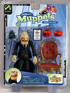 Along with the Waldorf Action Figure, Statler was featured in the sixth series of Palisades Toys' line of Jim Henson's Muppets action figures. Both hecklers came with a Victorian chair from their theater box, some Muppet vegetables, and a playbill. They also had a special waist articulation, based around the hip mechanism.