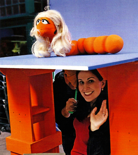 Stephanie D'Abruzzo (b. December 7, 1971) has been a Sesame Street puppeteer since 1993. In that time, she has performed a myriad of background and one-shot characters, and recorded vocals for a number of songs, including an animated version of "Sing" and "Brothers and Sisters." Her major characters of note have included Elizabeth, a loud but cheerful little girl; Lulu, a curious monster (whom D'Abruzzo helped to develop[1]); Baby Bear's little sister Curly Bear; and Prairie Dawn beginning with season 46.