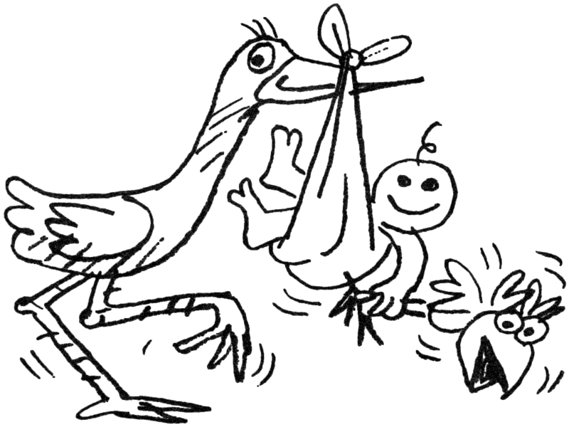 An old folk tale concerning the question of "where babies come from" involves a newborn child being delivered to parents in a sack by way of a stork. Some versions of the story claim that the birds retrieve the babies from caves which they then transport all over the world, sometimes delivered by dropping the parcel attached to a small parachute. The story has appeared in many cultures through illustrations, literature, and fairy tales, and in the modern era, commonly by way of animation. Some of the more notable examples include the delivery of baby Dumbo in the Disney film of the same name, various Looney Tunes, and the 2016 Warner Bros. animated feature Storks.