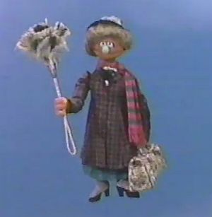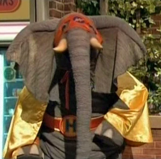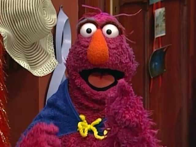 Telly sometimes dons a homemade cape (a blue towel tied with yellow string) when portraying his superhero personas, such as "Triangle Guy" in Episode 3058 and "Super Telly" in Imagine That! | |