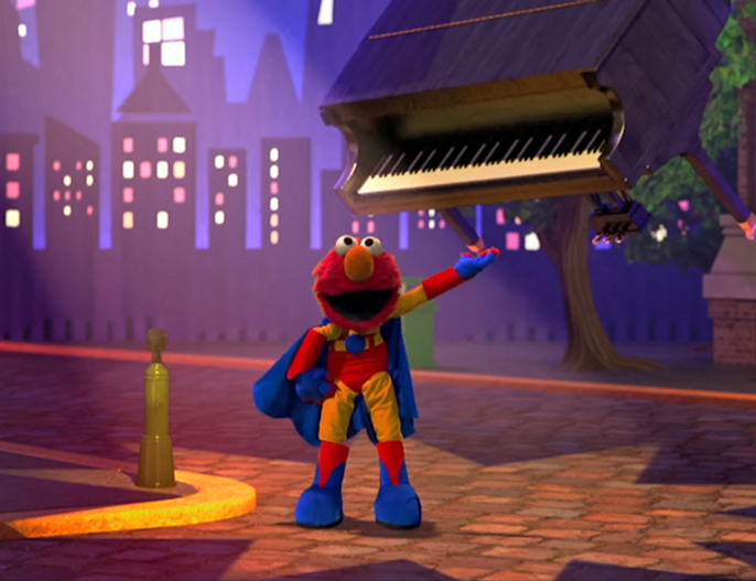 Elmo the Musical: Superhero the Musical | Elmo portrays "Mighty Elmo," who possesses massive strength and massive kindness |