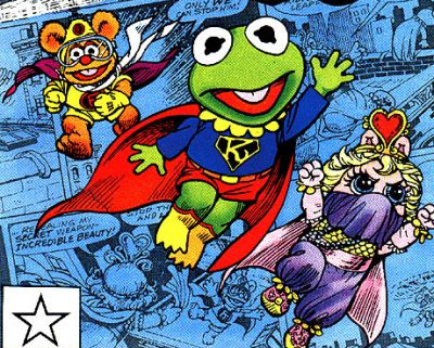 The Muppet Show Comic Book: Family Reunion #7 | The Muppets are seen wearing costumes of familiar DC Comics and Marvel Comics characters, including Wonder Woman, Batman, Superman, Captain America, Thor, and Robin. |
