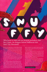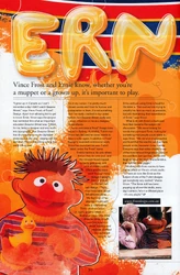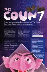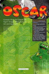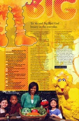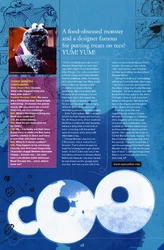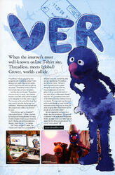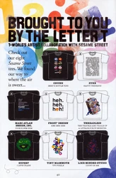 In issue #6, T-World published a special tribute to Sesame Street's 40th Anniversary entitled T-World's Artist Collaboration with Sesame Street. The article's pages feature profiles of Bert, Big Bird, Cookie Monster, Ernie, Grover, Oscar the Grouch, Snuffy and The Count.