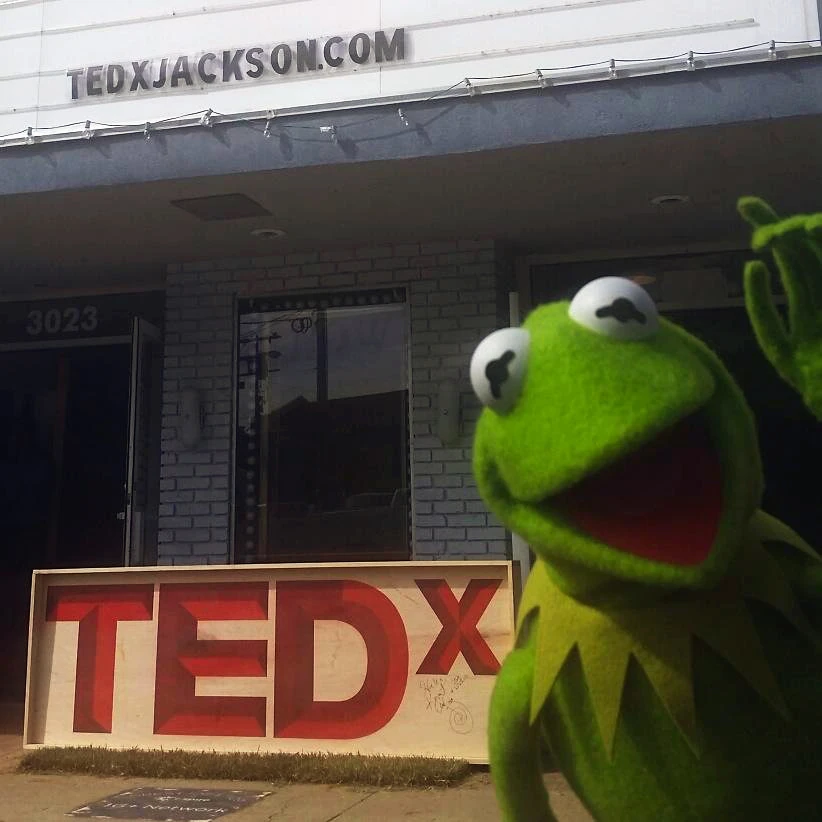 Kermit the Frog spoke at TEDxJackson in Mississippi on November 6, 2014. After showing a clip of the Sam and Friends version of "Visual Thinking", Kermit said, "The guy with the glasses, that's actually Ted."[2] Mike Quinn assisted Steve Whitmire in performing Kermit for the appearance.[3]