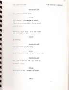 There sure is a lot of great stuff here in the script, but is it possible to upload the entire thing? Just curious. I wasn't sure if that would be part of a copyright violation or not. Znsnyder 10:50, 20 March 2009 (UTC)