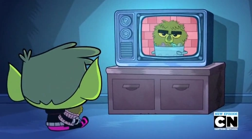 - In the episode "Hot Garbage," Beast Boy reveals that he watches a TV show with a green, garbage-loving character that resembles Oscar the Grouch.