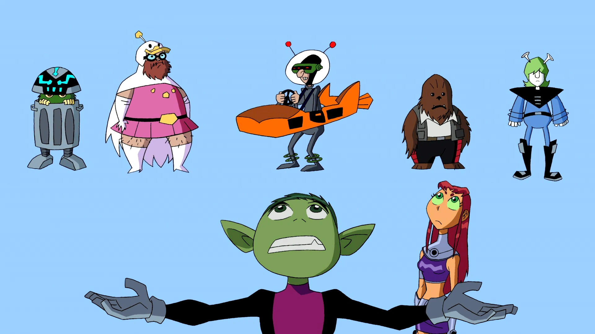 - The season four episode "Don't Touch That Dial" (aka "Episode 257-494") features a plot in which the villain Control Freak inserts himself into parodies of various TV shows and movies. Beast Boy explains that "Clash of the Planets" is "the greatest sci-fi series ever made" as a sampling of characters cascades by including references to Star Wars and Star Trek, as well as a green, furry character peering out from within a garbage can in a reference to Oscar the Grouch.