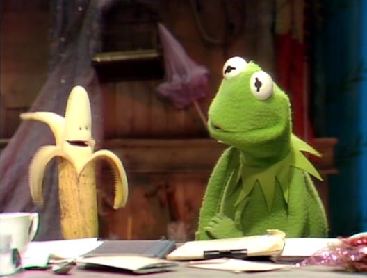Nobody could believe that a showbiz professional like Kermit had never heard of the Banana sketch. But every time Kermit tried to find out what it was, everyone would crack up before they could finish it. The furthest anyone got was "These two bananas are walking down the street, and one banana says..."