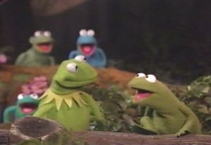 One such skit featured the Muppets; Kermit the Frog and Robin, surrounded by other frogs and animals in a devastated swamp, watch the broadcast, and discuss how the polluting ways of mankind harm animal life and lead to extinction. Puppeteers included Jim Henson (Kermit), Jerry Nelson (Robin), Dave Goelz (as an elderly frog), Kevin Clash (as an alligator), and David Rudman (as an iguana). The segment was personally directed by Jim Henson, and written by Jerry Juhl and Bill Prady.