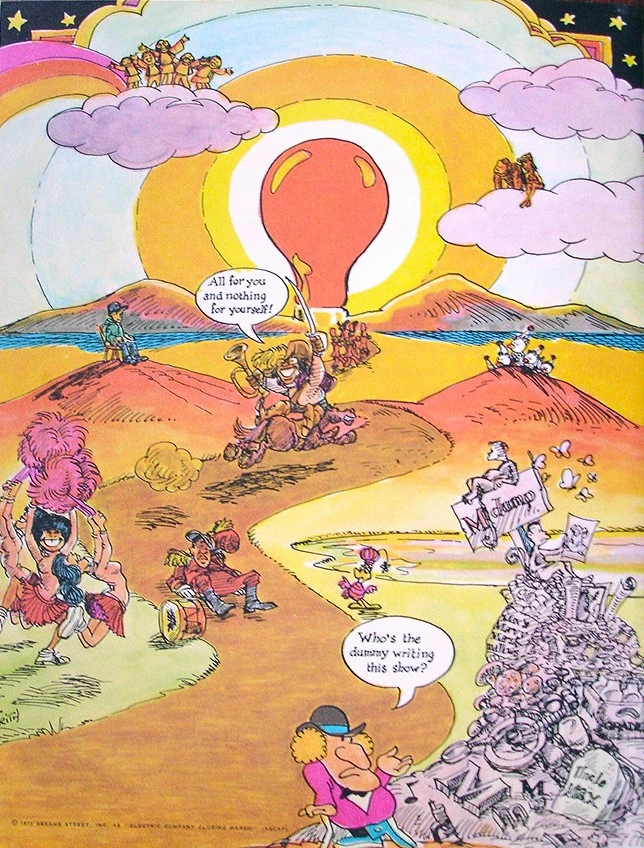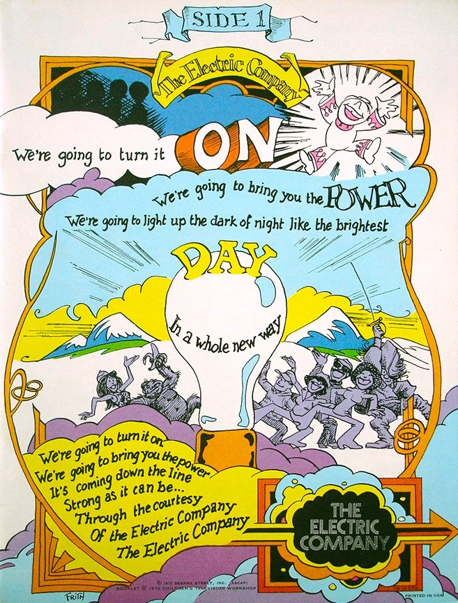 Michael K. Frith illustrating the cast and theme song for The Electric Company album/book