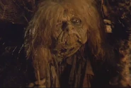 The Junk Lady appears in Labyrinth. She is one of the many Junk People piling massive amounts of miscellany upon their backs in the Junk City, just outside the gates of the Goblin City. Upon waking from her fruit-induced slumber, Sarah thinks she is waking up in her bedroom — but she then finds herself in The Land of Junk, confused and unsure what she had been searching for prior.
