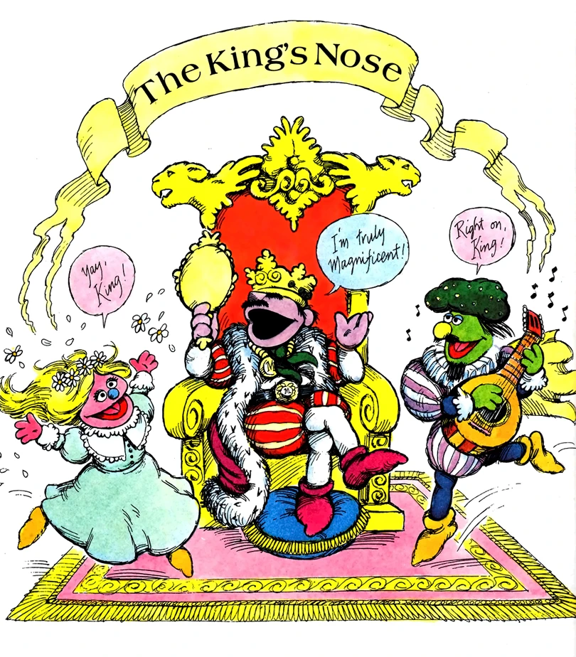 Once Bruce takes the ball off the King's nose, the others take the balls off of their own noses. The King thanks Bruce for pointing out how silly everyone looked, and he gives Bruce back his ball, plus an extra one. He gives the remaining balls to his daughter, Princess Emily (Cookie Monster), who eats them.