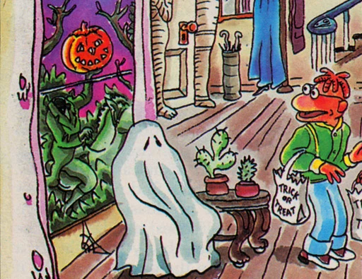 - The Fall 1983 issue of Muppet Magazine features a picture game in which the reader finds seventeen scary characters. The Headless Horseman can be seen outside the window of the haunted house.