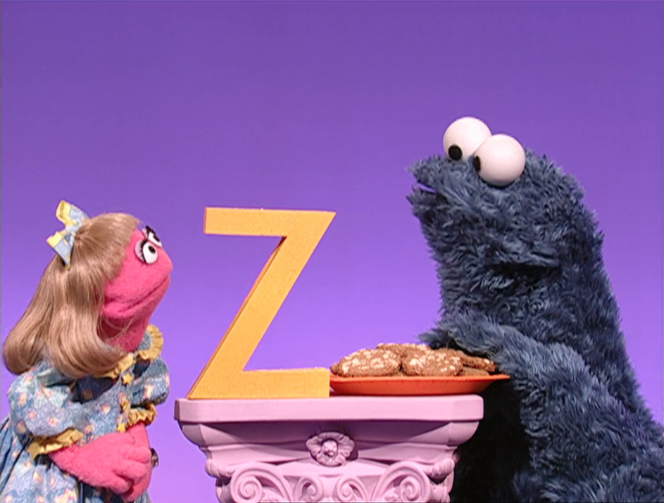 Episode 4082 | Z - Cookie Distraction Prairie Dawn decides to give Cookie Monster a plate of cookies so he doesn't eat the letter Z, but alas, as Prairie lectures, Cookie Monster eats all the cookies and then proceeds to eat the Z. |