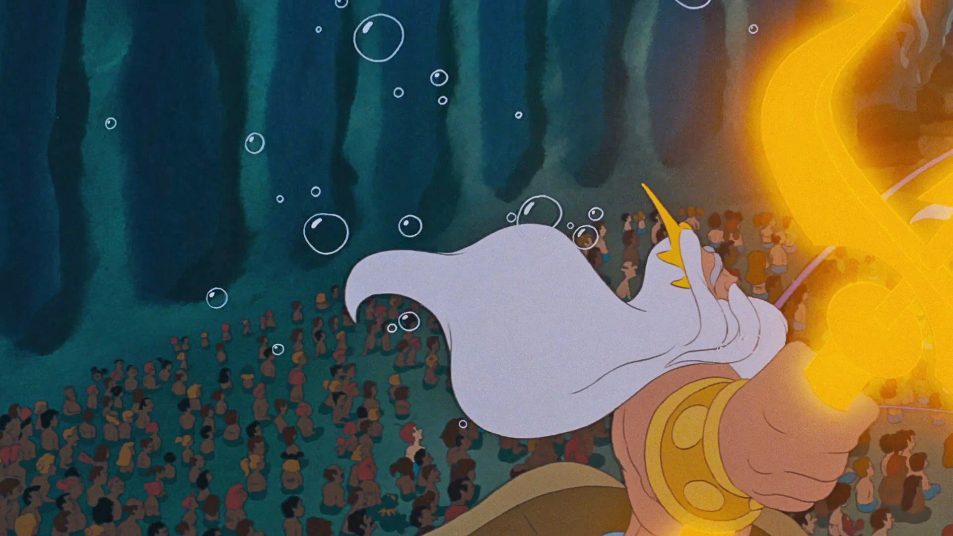 - In Disney's 1989 adaptation, King Triton makes a grand entrance at the beginning of a concert led by Sebastian. The audience is filled with Triton's royal subjects including Mickey Mouse, Donald Duck, Goofy, and Kermit the Frog.