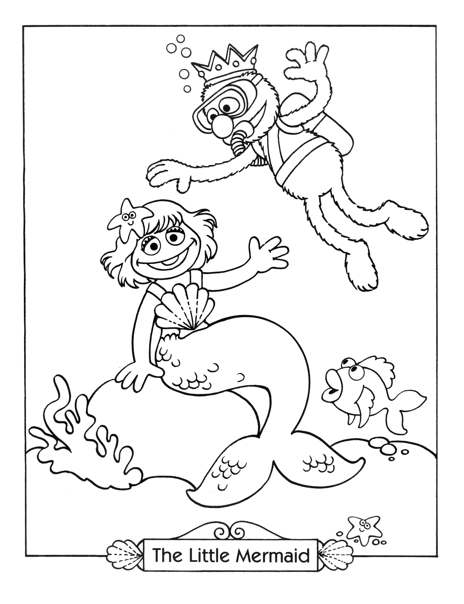 - Prairie Dawn plays the Little Mermaid who meets Grover as the Prince in the 1995 coloring book Sesame Street Storybook Fun.
