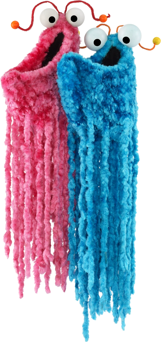 The first puppets were originally chenille hats, adapted by Caroly Wilcox.[1]