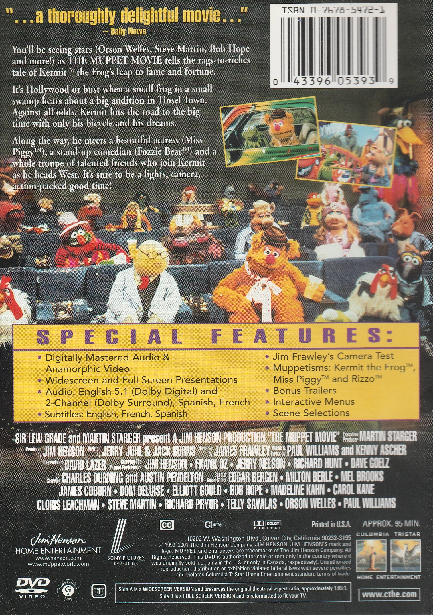 2005 | Distributor: Buena Vista Home Entertainment (Walt Disney Home Entertainment) Catalogue number: 40547 Anniversary Edition Released to promote Kermit's 50th anniversary. As with the Columbia TriStar release, this contains both the widescreen and fullscreen transfers, but a different set of bonus features. Disc Features