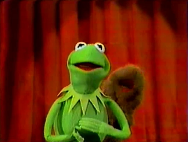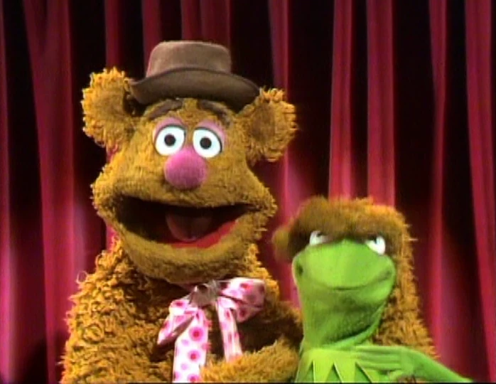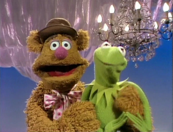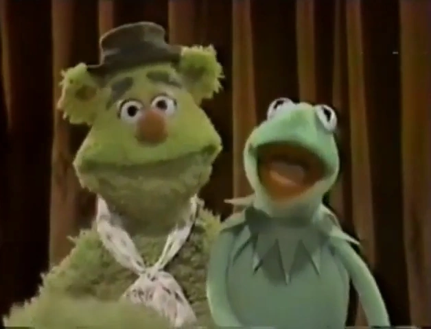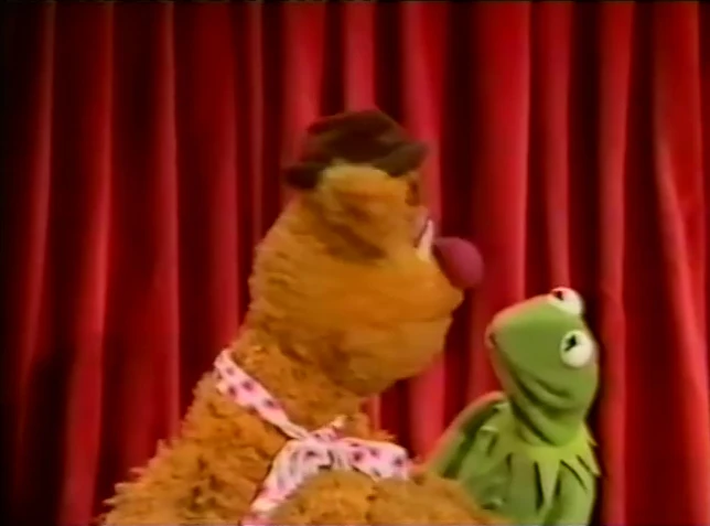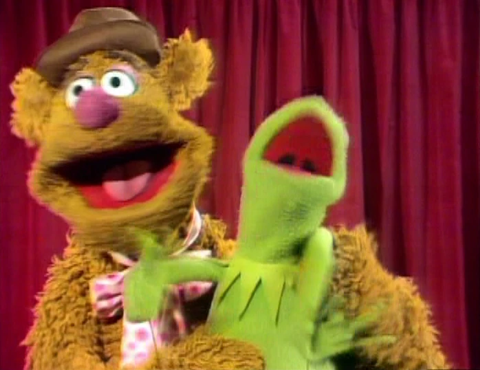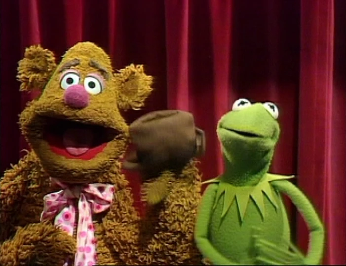 Fozzie crouches down in front of Kermit while he talks about the show. After a clip from "Mr. Cellophane" is used, Fozzie jumps up in front of Kermit and begins wiggling his ears. |