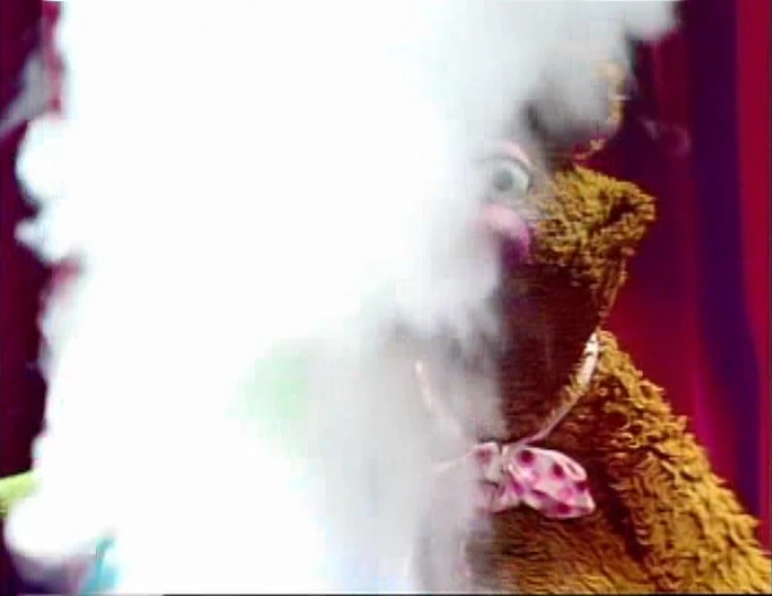 As Kermit talks, Fozzie futzes around with a piece of wire, then claims to have made it into the shape of a puppy dog.[1] |
