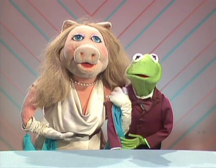 Taped during the recording of The Muppets Go to the Movies, Kermit and Fozzie promote reruns of the show featuring "a whole galaxy of superstar guests" and "all our regular guys" including the Frog, the Bear and the Pig. Fozzie takes Kermit aside and asks if they could talk about that pig. A montage of clips featuring Ethel Merman, Pearl Bailey, Harry Belafonte, Julie Andrews, Dudley Moore, Diana Ross, Debbie Harry and Liberace is shown. (YouTube) |