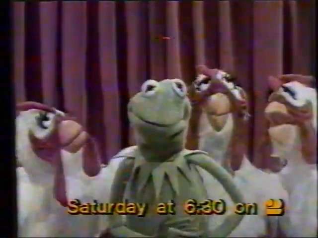 Kermit and Scooter appear before a clip of "Brush Up Your Shakespeare." Note: The only currently available copy of this promo is from a WLNE broadcast who chose to completely cover the screen during the unique part of the spot: a swift sound effect is heard prompting Kermit to say, "huh?" Scooter answers: "Superman." |