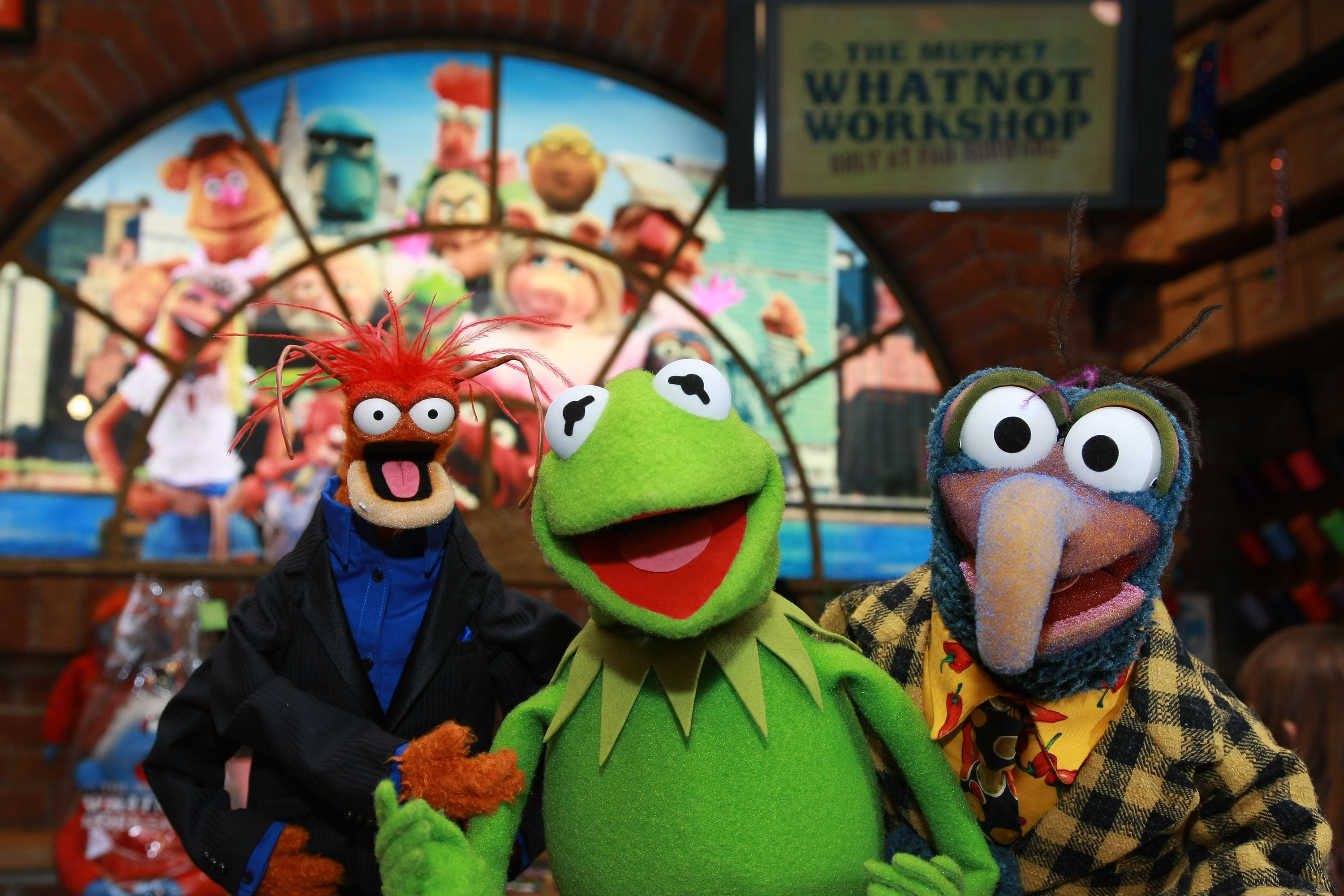Kermit, Pepe, and Gonzo making an appearance at the store on November 13, 2008.