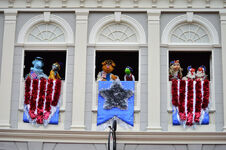 The same windows have also been used for Kermit, Fozzie, Miss Piggy, Gonzo, Sam, and two chickens to make physically distant, silent, holiday-themed appearances in November 2020.[3][4]