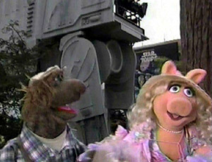 Beauregard and Miss Piggy in front of Star Tours.