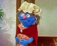 In her earliest known appearance (in a "Sesame Street News Flash" segment), she is played by Frank Oz. When Kermit arrives at her house, she quickly, and without asking, puts him in charge of babysitting so she can go bowling. (She is a member of the Gray Panthers Bowling League.) Her house is located next to the Young Woman Who Lives in a Hat. In this segment, nine of her children are named. She tells Heather and Johnny not to fight; Brian, Lisa and Cheryl not to watch too much television; and Polly and Kate to go to bed when the frog says. The first five children named have the same first names as Jim and Jane Henson's five children, and Polly and Kate are named after Jon Stone's children. One of the children also calls out for his sisters Amanda and Rachel. (First: Episode 1050)