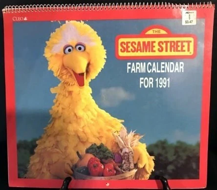 The Sesame Street Farm Calendar for 1991 was published by Gibson Greetings under the Cleo imprint.