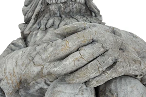Detail of the Snoozer puppet from The Jim Henson Company 70th Anniversary Auction in 2025. It is made of carved foam painted to look like stone, and has detachable eyes so it can look awake or asleep.[1]