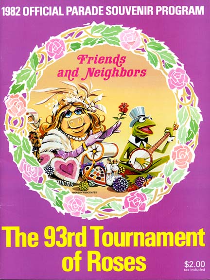 In 1982, the theme of the parade was "Friends and Neighbors". America's Credit Unions (CUNA) sponsored a float featuring Miss Piggy and Kermit the Frog, which was constructed by Fiesta Floats.