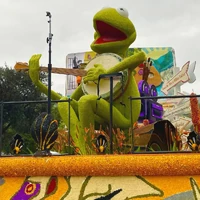For 2026's theme, "The Magic in Teamwork", Kermit was featured on a float sponsored by Visit Mississippi entitled "Where Creativity Blooms".[19] The float honored the famous residents of Mississippi with the main focus being on Jim Henson, represented by Kermit. The lovable frog was seen sitting on a log while playing his banjo, reenacting the famous scene from The Muppet Movie where he sings "Rainbow Connection." A stage appeared in front of the float for live performances, while the back of the float featured a pile of books and art supplies.