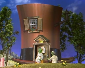 The Young Woman Who Lives in a Hat is the title character of a lesser-known Nursery Rhyme. As her name suggests, she lives in a giant hat (a brown top hat to be precise). She does continual and perplexing impressions of dogs and cats. She kindly points Kermit to house of her neighbor, the Old Woman Who Lives in a Shoe, in a "Sesame Street News Flash" segment. Her neighbor on the other side is the Young Man who Lives in a Glove.
