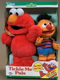 The original Tickle Me Elmo was repackaged with a small plush of another Sesame Street character. Not to be confused with Tickle Me Pals.
