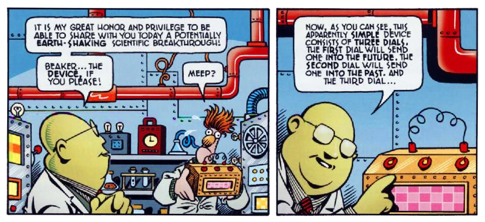 - In The Muppet Show Comic Book preview, Dr. Honeydew's time machine gets Beaker stuck in a 30-second time loop.