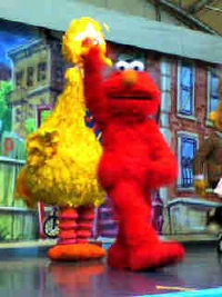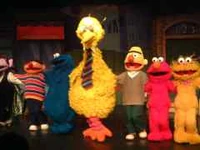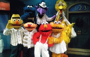 Walk-around characters included Big Bird, Cookie Monster, Elmo, Ernie, Bert, The Count (first appeared in late 1990s), and Zoe (first appeared in early 2000s). In stage shows, the characters' voices were dubbed by the same voice actors from the NHK dub.