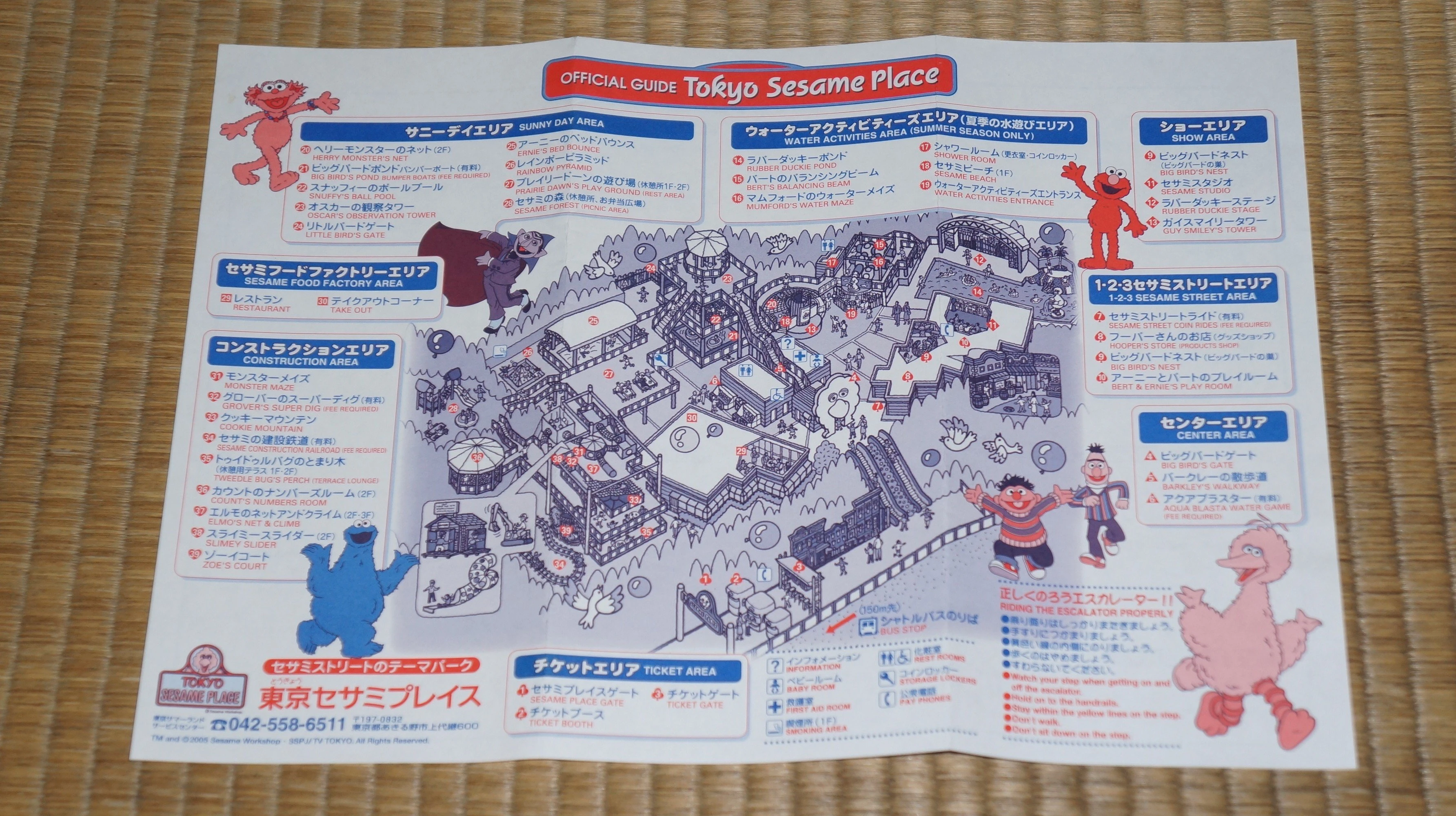 To enter the theme park, visitors went on a long escalator ride through a steep hill to the top in front of a giant Big Bird head. (At 40.8 meters, it was the longest escalator in Japan at the time.[2])