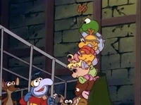 In the episode "Of Mice and Muppets," the Babies assemble as the Number One Wonk to save Baby Gonzo from the Wall Wonker. Kermit, as the Wonk's head, informs the creature that he's being sent back to the planet Wonkus. Their illusion is short-lived as the bottom of their robe is caught and reveals their deception.
